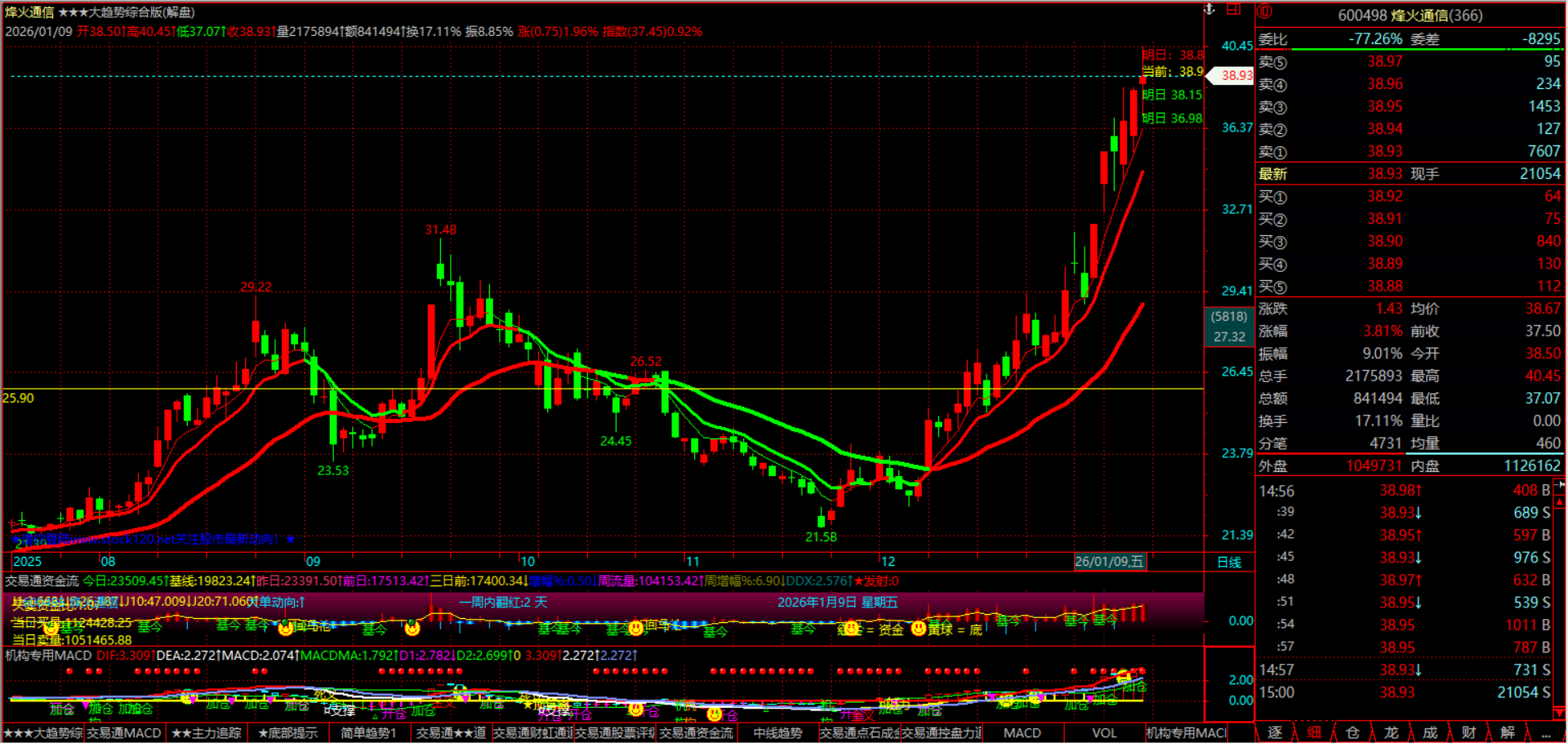 当市场迷雾笼罩,总有一群强者以远见为锋、以同心为盾,在涨跌博弈中劈开混沌;当热点轮动加速,总有一支劲旅以精准为刃、以坚守为基,在机遇浪潮中独占鳌头。2025年12月8日至2026年1月9日,我们——股市休闲团体,用一场横跨月余的实战征程,书写了关于实力与凝聚力的巅峰答卷。 短线惊雷:精准狙击 引爆势能 短线战场,唯快不破;热点博弈,唯准不立。我们摒弃犹豫观望,直击市场核心脉络,于创业板与主板标的中精准锁定爆发力引擎。300751、300342双雄齐驱,以锐不可当之势撕开上涨通道;300503、300446、300433紧随其后,多点开花引爆短线热潮;600498、000960沉稳发力,在震荡中突围而出。更有高光操作惊艳全场——周四果断布局000917,次日便强势封板,一日斩获涨停硕果,用极致效率诠释短线博弈的巅峰水准,完美印证“强者恒强”的实战哲学。每一次介入都踏准节奏,每一次离场都果断从容,这不是运气的偶然眷顾,而是团体成员无数次复盘沉淀的必然结果,是心有灵犀、同频共振的实力彰显。 波段登顶:顺势而为 再攀新高 波段征程,贵在审时度势;价值挖掘,重在凝心聚力。我们不恋短期浮华,深耕趋势赛道,于行业轮动中捕捉确定性机遇。300058、601179、601600稳步攀升,在波段行情中走出昂扬曲线;002342、605598、603598厚积薄发,以坚韧态势突破前期瓶颈;600776、600862逆势而上,在市场分化中锚定方向,用持续走高的态势诠释“顺势而为”的智慧。从标的筛选到仓位协同,从趋势研判到节奏把控,团体成员各司其职又紧密联动,用集体智慧抵御市场波动,在波段博弈中步步为营,终达新高之巅。 航天领潮:八剑齐发 冠绝全场 最是传奇震撼人心,最是同心所向披靡。2025年12月30日,我们精准预判航天科工系投资机遇,重磅布局600855、600271、600501、000901、000547、688552、300747、002025,八只核心标的,以“八剑齐发”之势开启领涨征程。短短十余日,8只标的尽数突破历史新高,成为市场中最耀眼的明星组合 !周四单日5只标的强势封板,600855一周两度涨停,600271、000901、688552等标的接力冲高,掀起一波又一波涨停狂潮,完美契合商业航天产业爆发的时代风口。这不是孤军奋战的侥幸,而是团体成员深耕行业、协同研判的巅峰之作;不是零散标的的简单堆砌,而是凝心聚力、精准布局的战略胜利,彰显了我们“看透本质、引领趋势”的硬核实力。 同心为炬:聚沙成塔 势不可挡 市场风云变幻,唯有同心者胜;投资征途漫漫,唯有笃行者远。一个月的时间,二十余只标的,从短线爆发到波段新高,从多点开花到航天领涨,我们用实战成果证明:伟大的征程从来不是孤军奋战,而是一群人朝着同一个方向,以专业为基、以信任为桥、以坚守为翼,在市场浪潮中并肩前行。每一次标的筛选都经过集体研讨,每一次操作决策都凝聚众人智慧,每一次上涨突破都见证同心力量。 没有凭空而来的成功,只有日积月累的沉淀;没有一蹴而就的传奇,只有众志成城的攻坚。股市休闲团体,以远见洞察机遇,以实力驾驭市场,以凝聚力铸就传奇。未来,我们将继续秉持初心,踏浪而行,与志同道合者共赴更高峰,在资本市场的星辰大海中,续写属于我们的荣耀与辉煌!