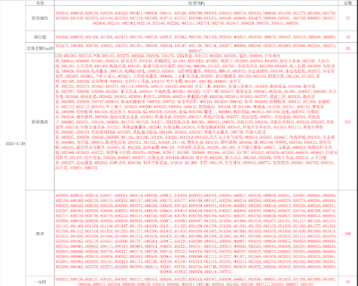 周一上证跳空高开后,做出了盘坚上涨动作以4082.13点阳线收盘。三市成交量较前一交易日放大至24531亿元。深证跳空低开后迅速补缺,尔后做出了继续扎空上涨动作以14966.75点长上影阳线收盘。今日商业航天、造船、元器件等板块表现活跃局涨幅榜前列。 后市上证4051-4067点做防守,之上方可继续参与反弹。关注创业板50个股动向,关注年报与一季报增长个股机会。关注半导体与通信设备等科技股个股机会(例如4月8日分析过的601138等)。关注并购重组概念股个股机会。后市继续关注锂电池与光伏等反内卷板块个股机会。深证14923点做防守,之上继续参与做多。